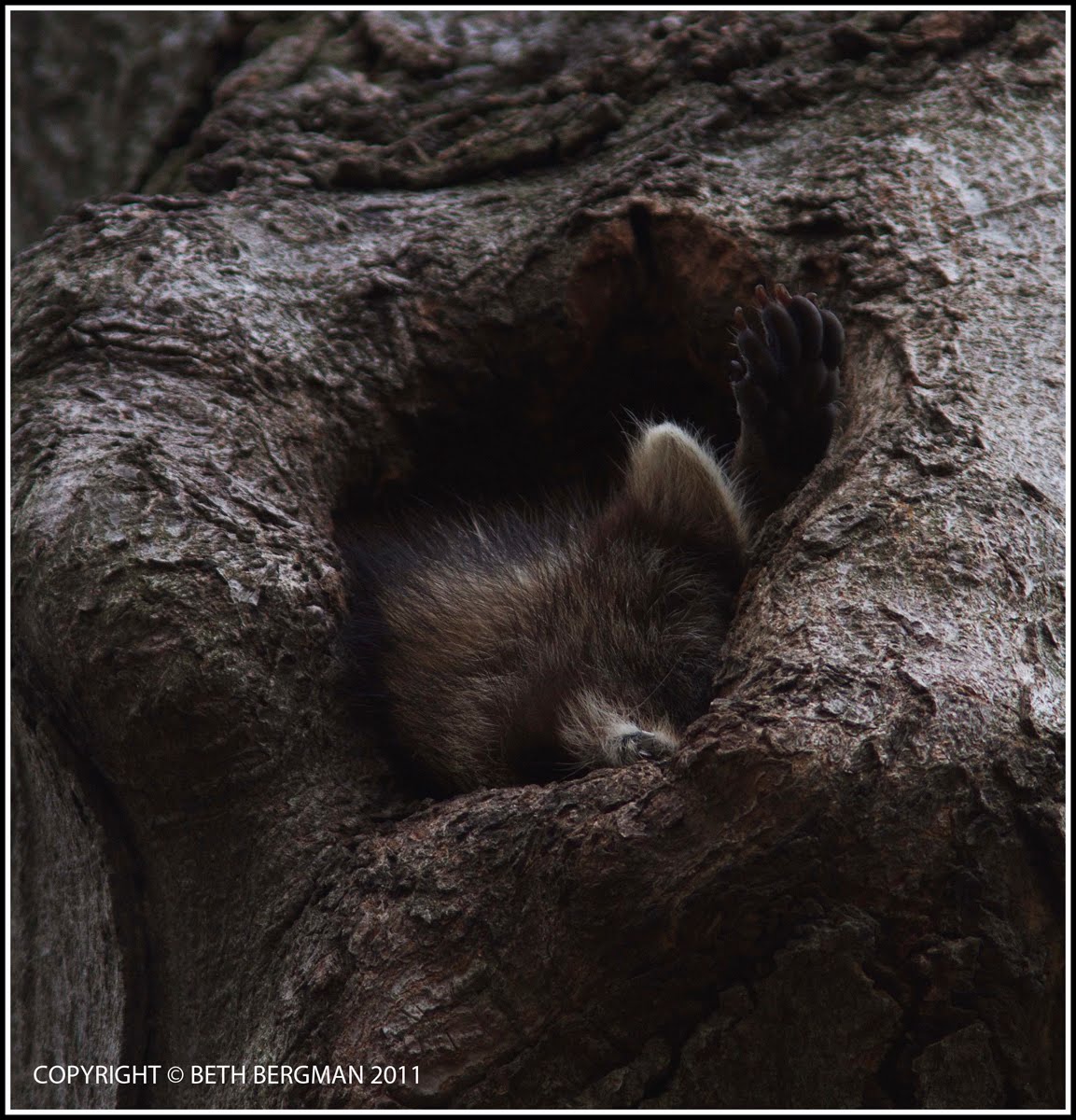 Meanwhile, surprise of surprises, north side of the condo, one flight up, the raccoon apartment.