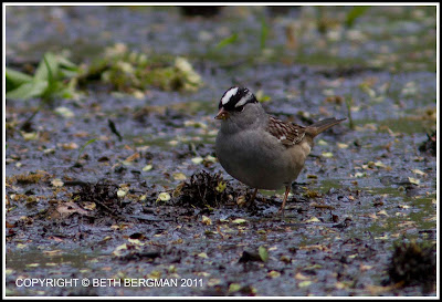 My pal pointed out this handsome surprise, a white-crowned sparrow... dining in muck de jour.