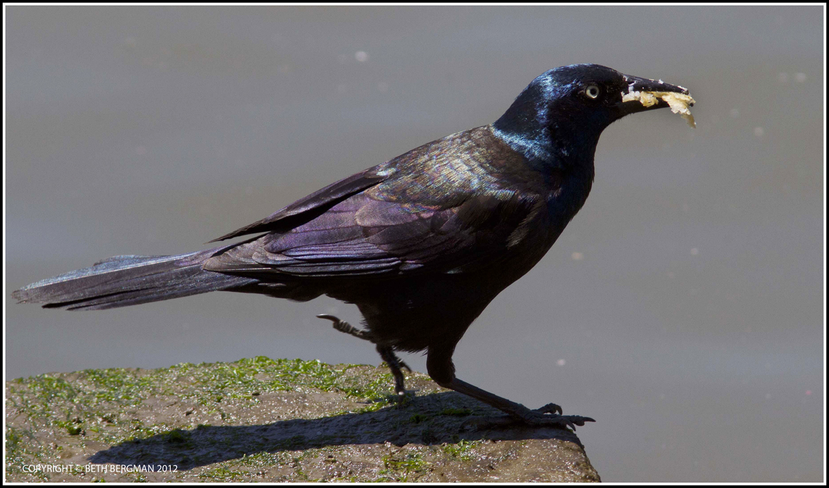 AIDS-Walk Sunday is no day to be in Central Park. Instead I headed down to the river. Lots of people there too. No warblers. Different sights. There's a cafe at 66th street. Food gets dropped. Birds find easy chow. At first I didn't know what the grackle was working on. A French fry. Nestlings are obviously getting a varied diet.