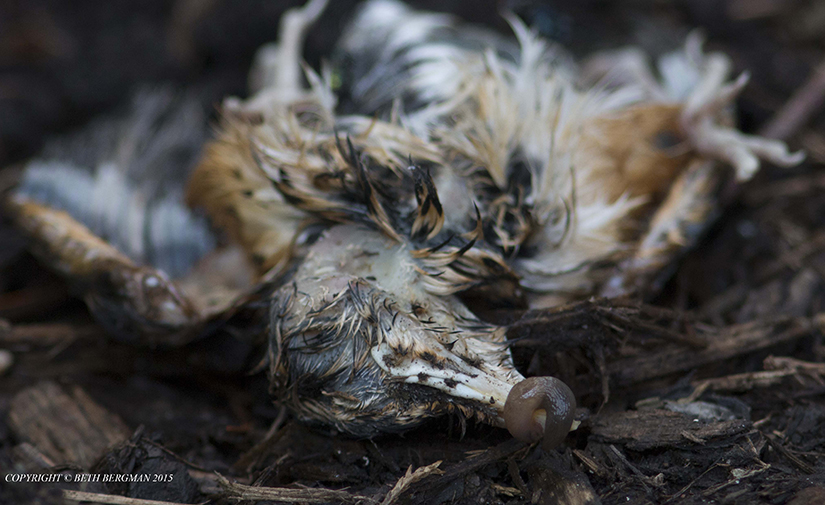 Only two big babies in nest. No sign of the third baby who had been inert the day before. |