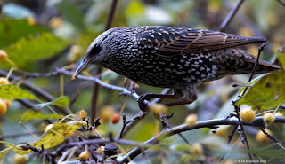 | Berries and bugs attract the regulars. And army of robins. These are robins arriving from up north. Our robins left town in August. |