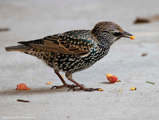 Humans go to the market. Starlings pick droppings of the sidewalk. Free.