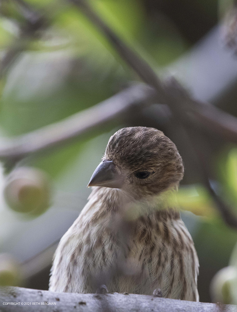 It was an ordinary day in the garden, but ordinary is also special. Female finch making portrait taking almost impossible. Twigs in the way.