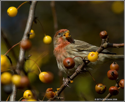 The robins and waxwings gulp the whole berry down. Very neat. The finches, on the other hand, really get into their food, evidence all over their faces. Put your face in the jam pot and enjoy every morsel.