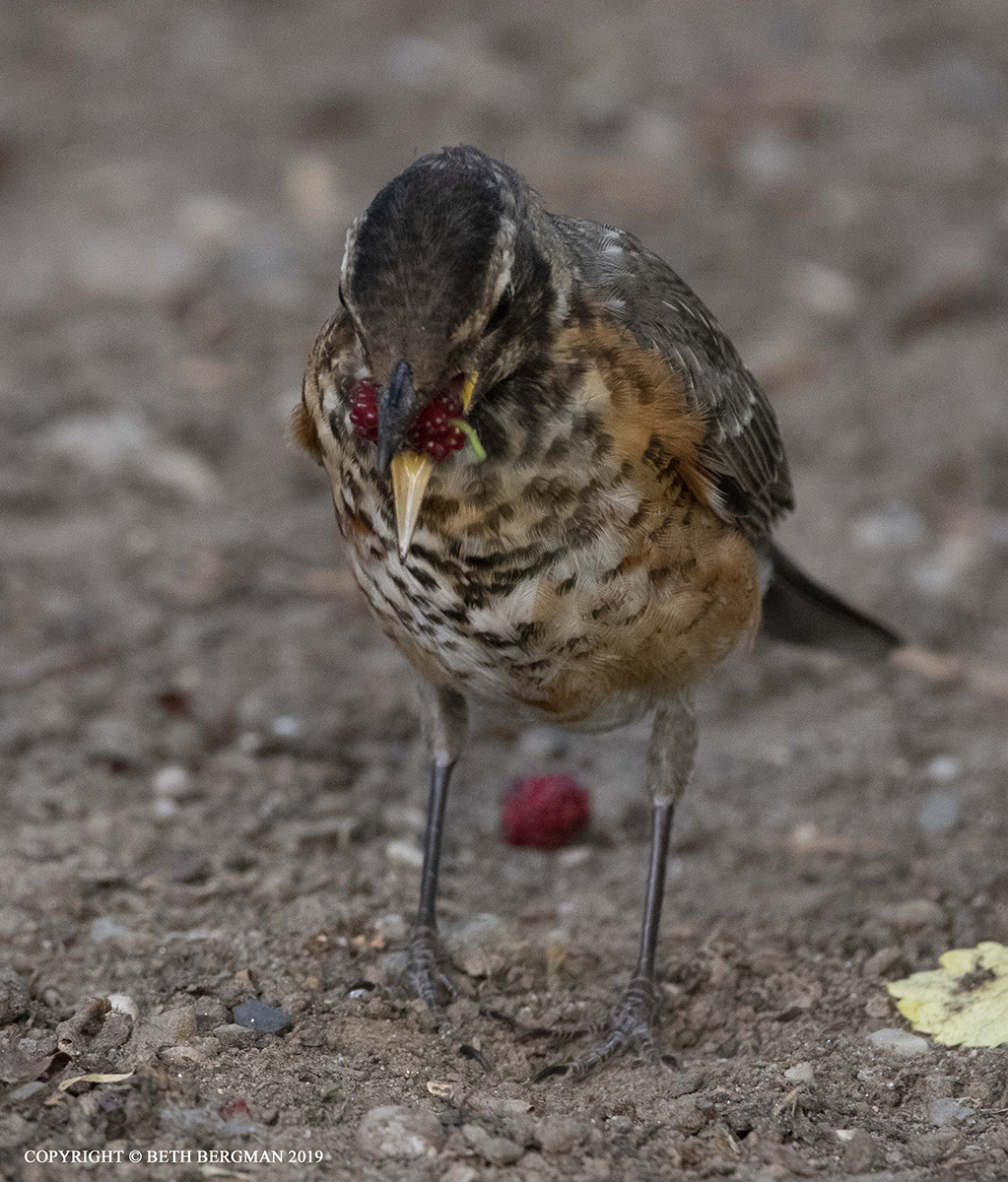 Rainy day, so back to July 9th. It's the opinion in the park that there have been fewer robins. I tend to agree even though we had a bumper crop of babies earlier. Fewer nests, fewer robins now. When they're in town they're fun to watch. The speckled robins are youngsters.